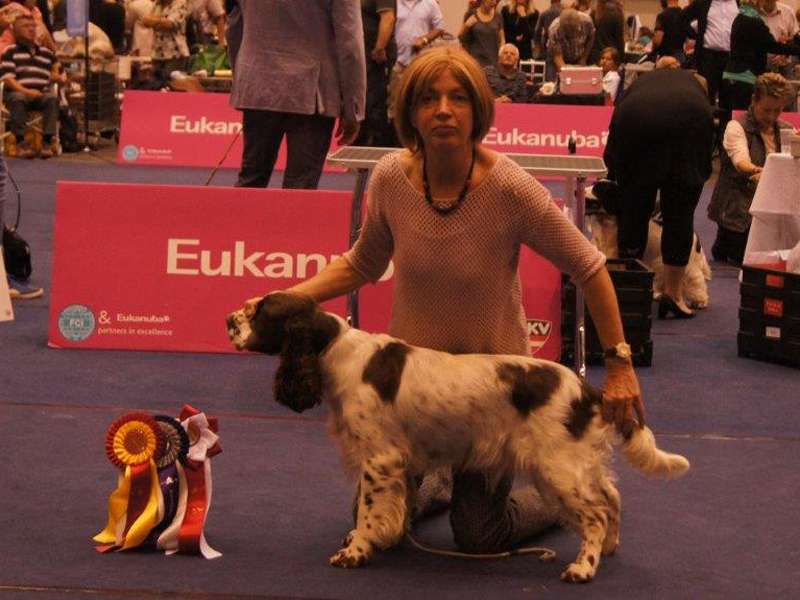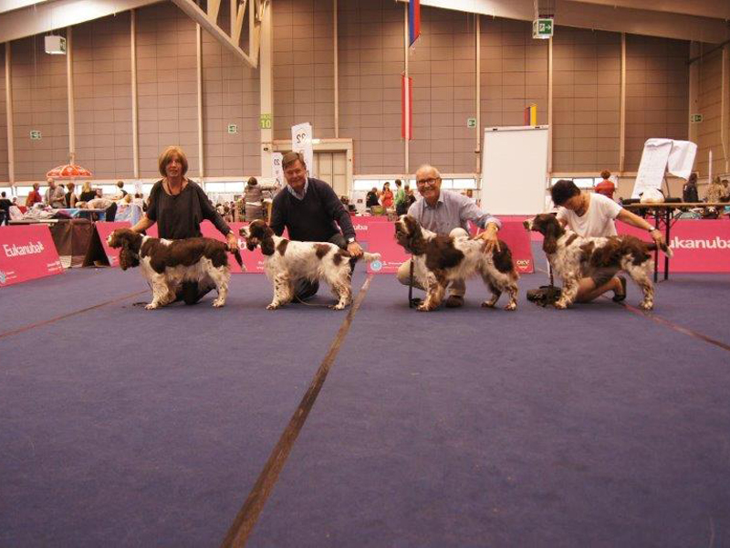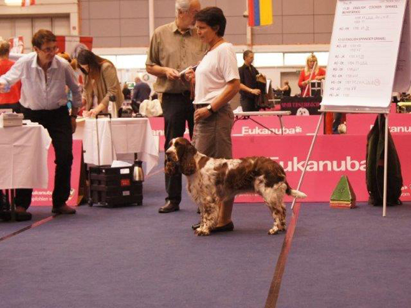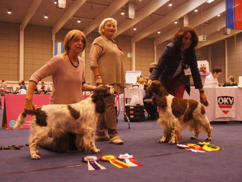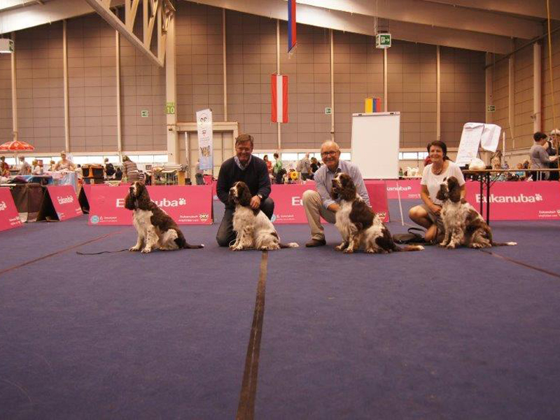 Große Freude über den Erfolg unserer Hunde beim Ausstellungswochenende in Tulln.Das lange Warten auf den Bewerb hat ich ausgezahlt. Erst spät am Nachmittag kamen nach den American Cocker Spaniels und den English Cocker Spaniels, die Englisch Springer Spaniels an die Reihe. Erstmals hatten wir vier Hunde gemeldet: Finkensse`s Babaco, Beauty und Bianca, Nachkommen aus dem Wurf: Springer Nest`s Gucci Girl x Lordsett´s James Dean.