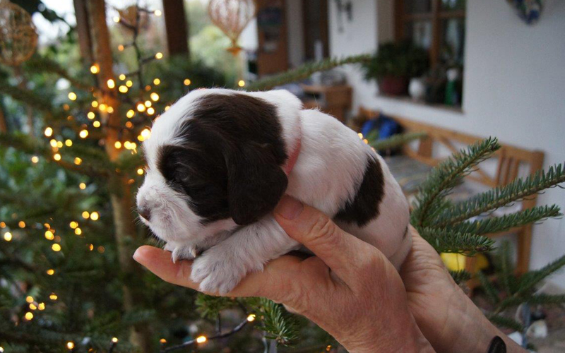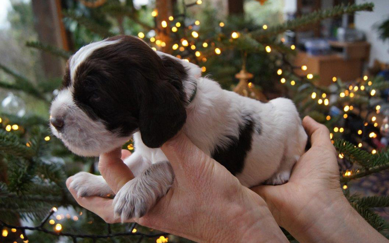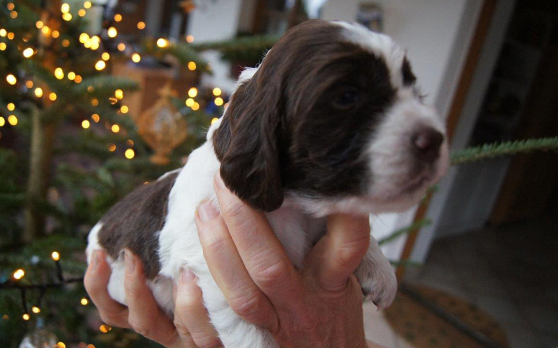 Anlässlich des Besuches unserer Freunde Fiona und Günter Riener mit Kindern und irischer Freundin, kam es zu einem neuerlichen Fotoshooting mit unseren sieben Springer Spaniel Welpen. Die Kleinen wurden bei den ersten Fütterungversuchen aus der Futterschüssel fotographiert , im Anschluss folgten die Einzelfotos. Es war ein sehr gemütlicher Vormittag, der mit dem Bau einer Schneefrau sein lustiges Ende fand.