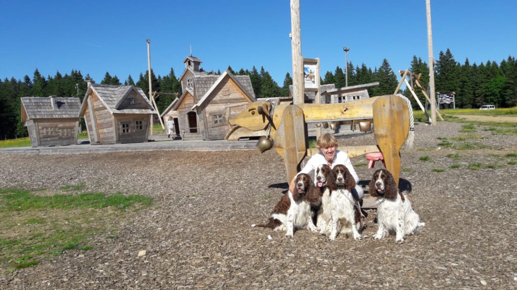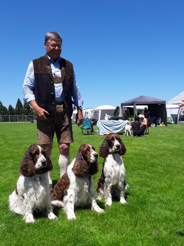 Bei wunderschönem Wetter lernten wir in Verbindung mit der Hundeausstellung eine herrliche Gegend kennen. Während zu Hause eine Bruthitze herrschte, fühlten wir uns auf 1.500 m Seehöhe „puddelwohl“ mit unseren English Springer Spaniels Gucci, Bianca, Rico und Daisy. Schon am ersten Ausstellungstag wurden unsere Erwartungen erfüllt: Bianca bekam ihr CACIB. Sie erreichte damit die Voraussetzungen für den Titel „Internationaler Champion“. Dies ist nach dem „Austrian Grand Champion“ der krönende Abschluss, bevor uns weitere erfreuliche Ereignisse mit Bianca ins Haus stehen. Ihre Schwester Daisy erhielt das Res. CACIB.