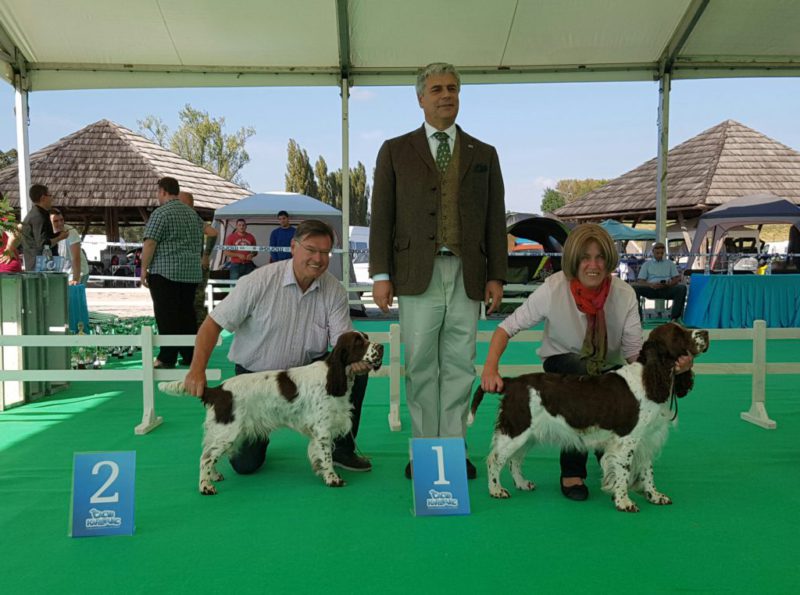 24. Aug. 2016: Unter dem ungarischen Richter Dr. Tamas Jakkel errangen Gucci ein CAC, CACIB und BOS, Bianca CAC, und Res. CACIB