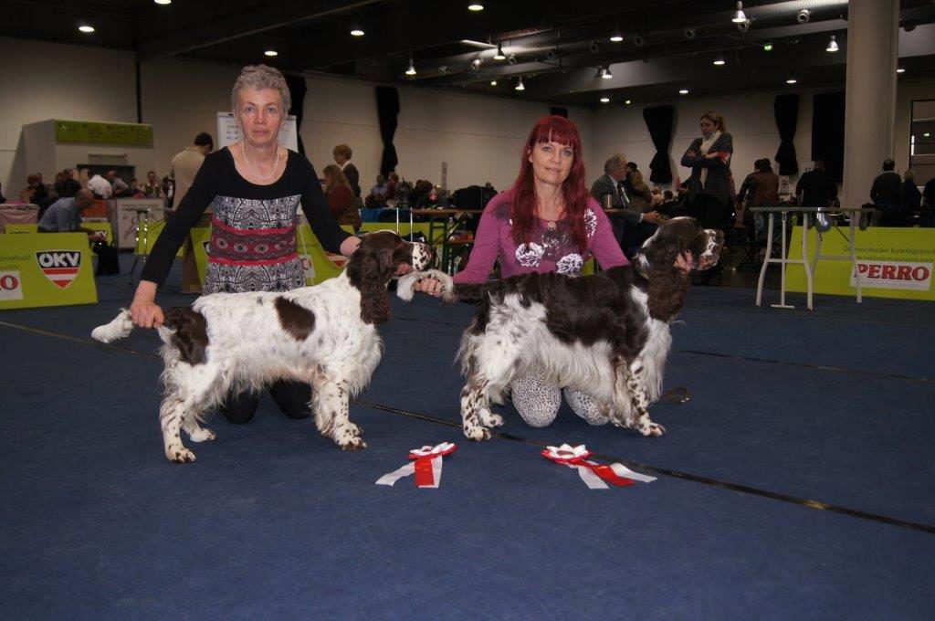 Unsere Bianca und Bassano von der Familie Karin und Johannes Riegler aus Wolfsberg – beide Geschwister vom B – Wurf – wurden von Evelyn am 4. und 5. März in Graz erfolgreich vorgeführt. Am Samstag erhielt Bianca V1 CACA Res. CACIB und Bassano V1 CACA. Am Sonntag bei der Klubsonderschau erreichten beide wieder den Klassensieg und V1 CACA. Die Beschreibungen der Richterin Roxana Opris aus Rumänien und von Richter Rudy Fayaerts aus Belgien sind sehr gut ausgefallen. Das war wieder ein großer Schritt auf dem Weg zum Österreichische Champion.