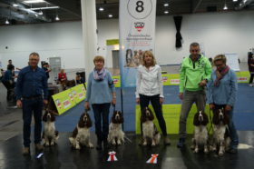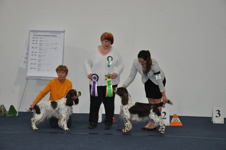 Evelyn hatte einen anstrengenden Tag, da sie vier unserer Hunde im Ring präsentierte. Schon der Beginn war sehr vielversprechend.