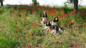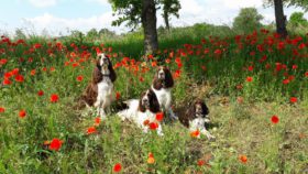Auf dem Weg nach Ungarn legten wir einen Stopp bei diesem herrlichen Mohnfeld ein, um unsere Springerspaniels ins rechte Licht zu setzen. Ricco, Gucci, Dolly und Bianca begleiten uns und lassen sich gerne fotografieren. Das war doch eine willkommene Reiseunterbrechung. Natürlich folgt dann noch ein ausgiebiger Spaziergang mit Dummysuchen, bevor die Reise wieder fortgesetzt wird.