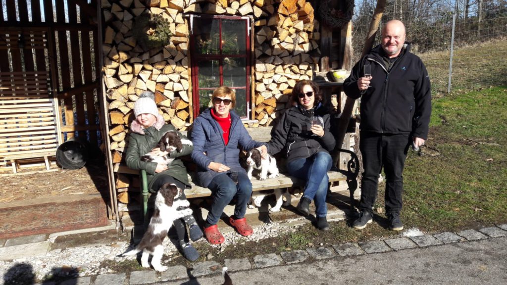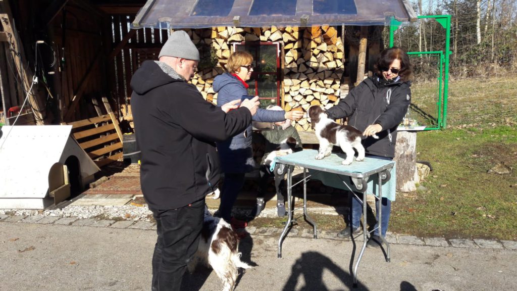 Unsere Tierärztin bewunderte beim Chippen und Impfen die entspannten und gesunden Welpen und war wie schon bei den letzten Würfen sehr begeistert. Am Donnerstag wird uns der Zuchwart des Österreichischen Jagdspanielclubs, Herr Paul Amon zur Wurfkontrolle besuchen und die Welpen sowie unsere Zuchtstätte überprüfen und einen Bericht erstellen. Daraufhin werden die Abstammungsnachweise (Zuchtpapiere) für jeden einzelnen Welpen erstellt.