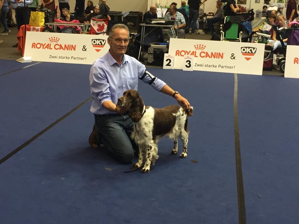 Vorzügliche Ergebnisse für die drei Ladies von Finkensee`s D – Wurf. Bei dieser Ausstellung gab es ein kleines Finkensee Familientreffen mit Monika und Hans Bayer und ihrer Dancing Diana V 3, mit Daniela und Thomas Spieler mit ihrer Dainty Daisy V 2, Res. CACA, und mit Karin und Bruno Kalischko mit ihrer Dreaming Dolly V 2.