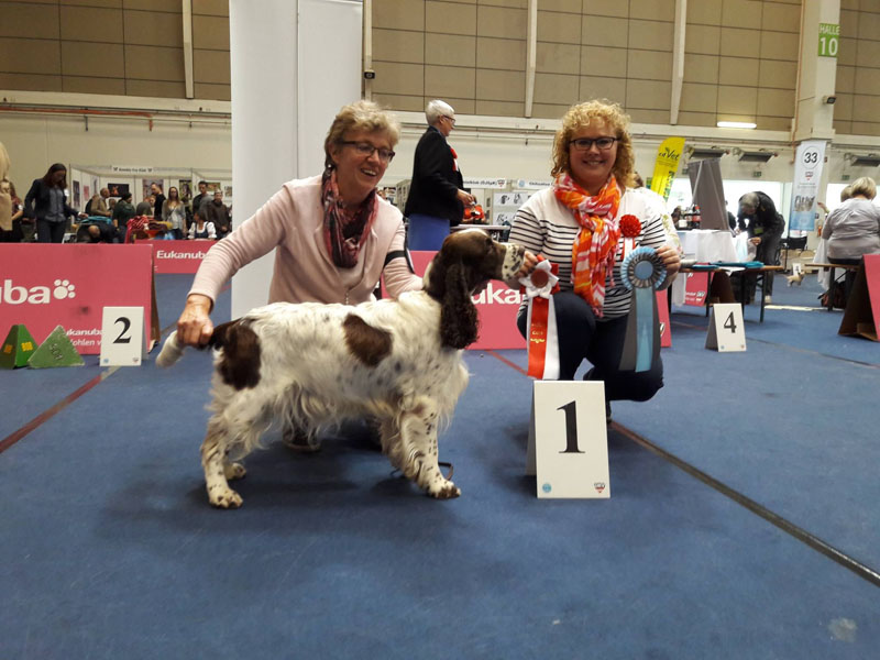 Der zweite Tag verläuft noch erfolgreicher. Bianca wird beste Hündin mit V1, CACA. CACIB, BOS. Richterin Kadike-Skadina Rita beurteilte Bianca wie folgt: Nice 2,5 years old female in working condition, correct head, good front and volume, correct angulations, strong back, moves very well, nice temperament.
