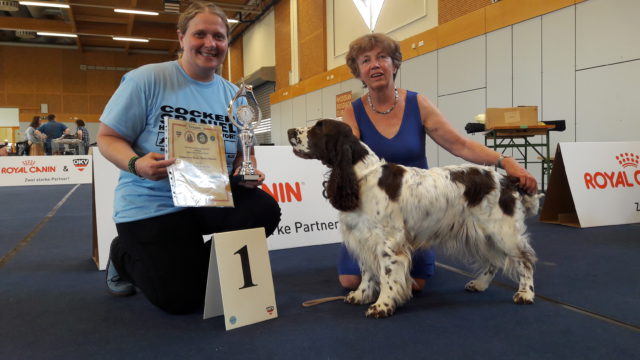 Für Bianca erhielten wir den Pokal und die Urkunde für den Springer Spaniel des Jahres 2017 von der Ausstellungsreferentin des ÖJSpK Frau Simone Lindner überreicht.