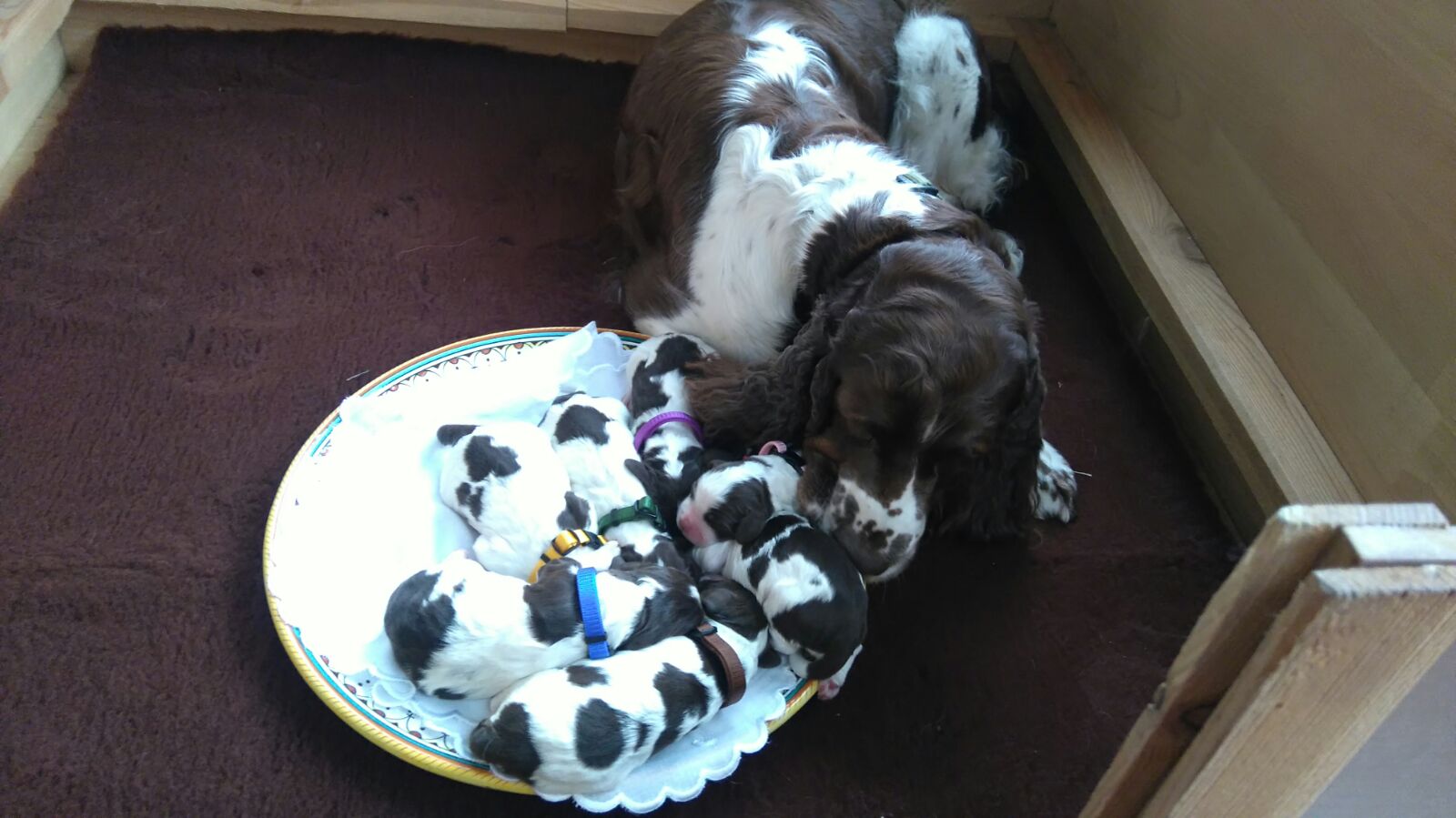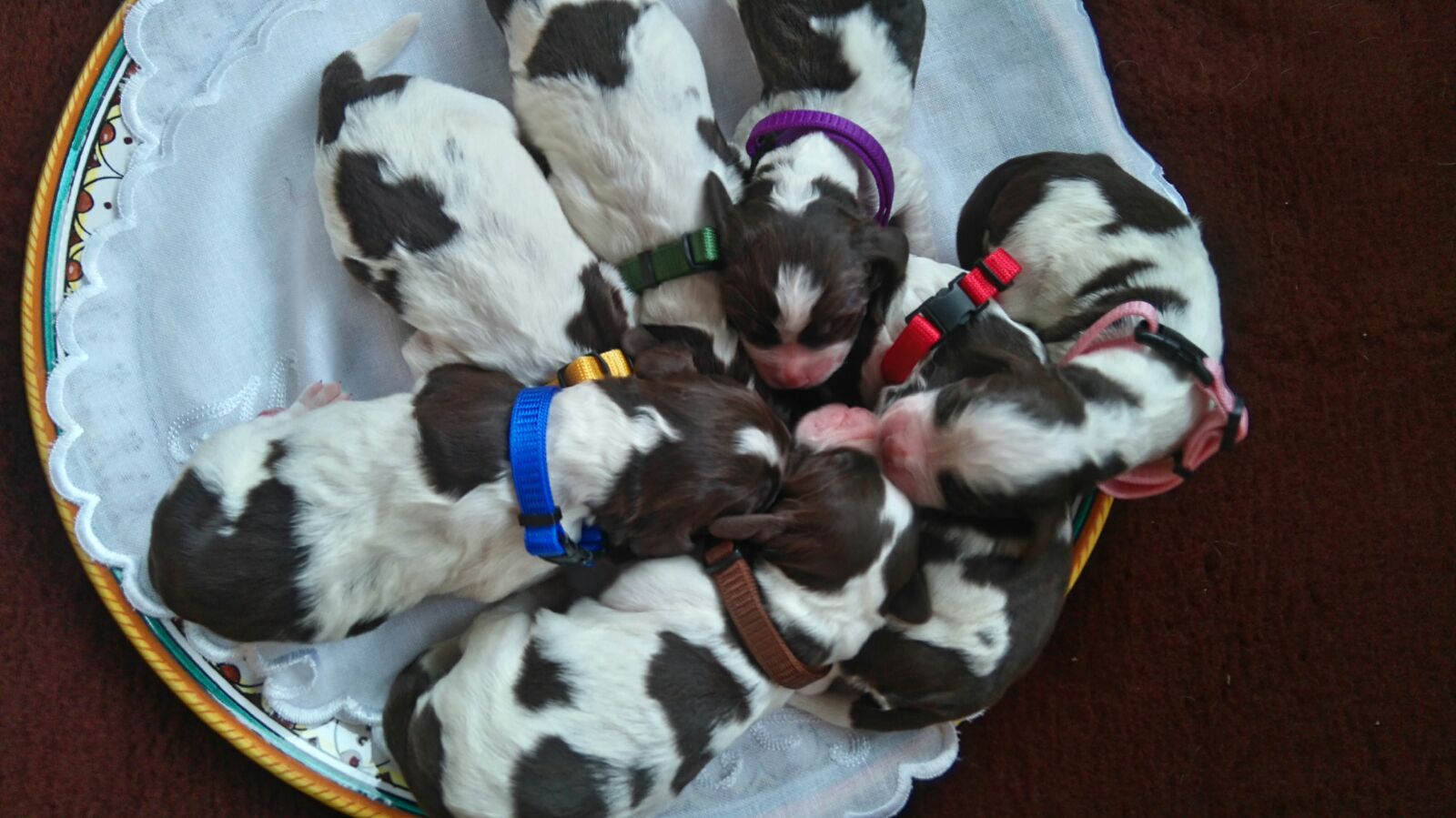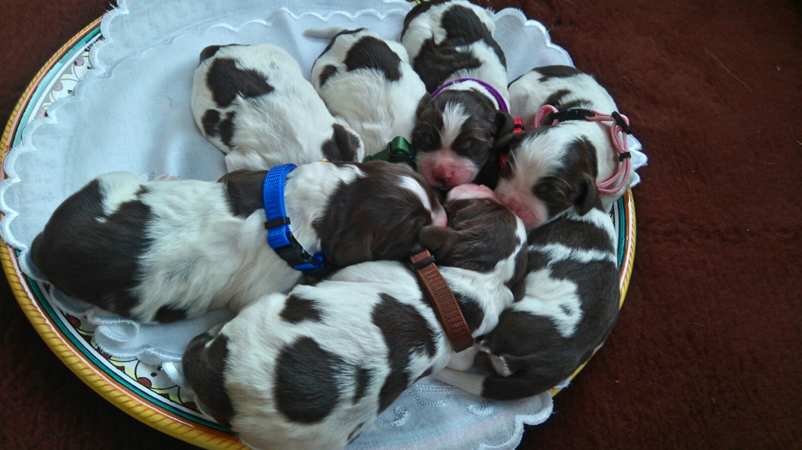 Das Hauptereignis des 10. Dezember war jedoch die Geburt in den frühen Morgenstunden. Unsere Gucci brachte in der Nacht sieben gesunde und gut entwickelte Welpen (fünf Mädchen und zwei Buben ) zur Welt. Unmittelbar danach eilte Evelyn mit Bianca zur Hundeausstellung, während ich ( Lothar ) mich um den Nachwuchs kümmerte. Wir freuen uns riesig über diesen tollen Wurf und über die künftige Vergrößerung der Finkenseefamilie, zu welcher sich schon zahlreiche Interessenten angemeldet haben.