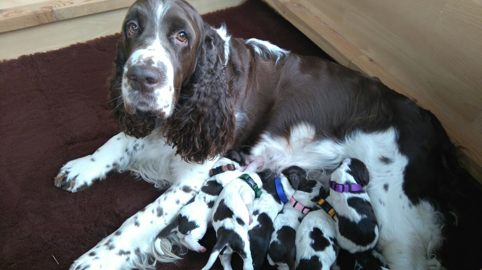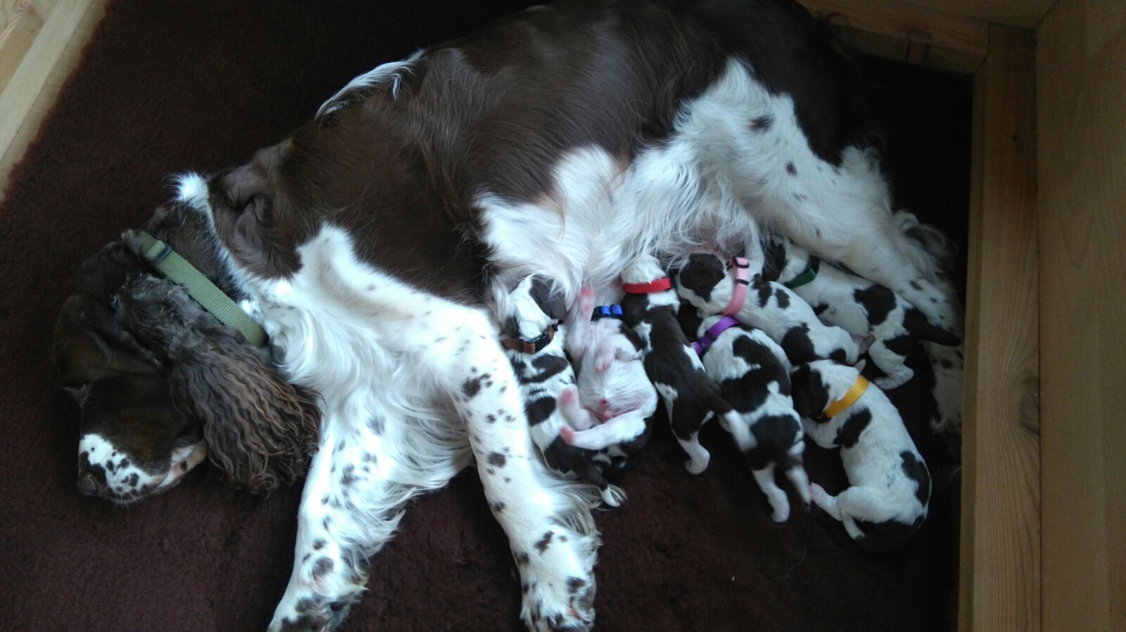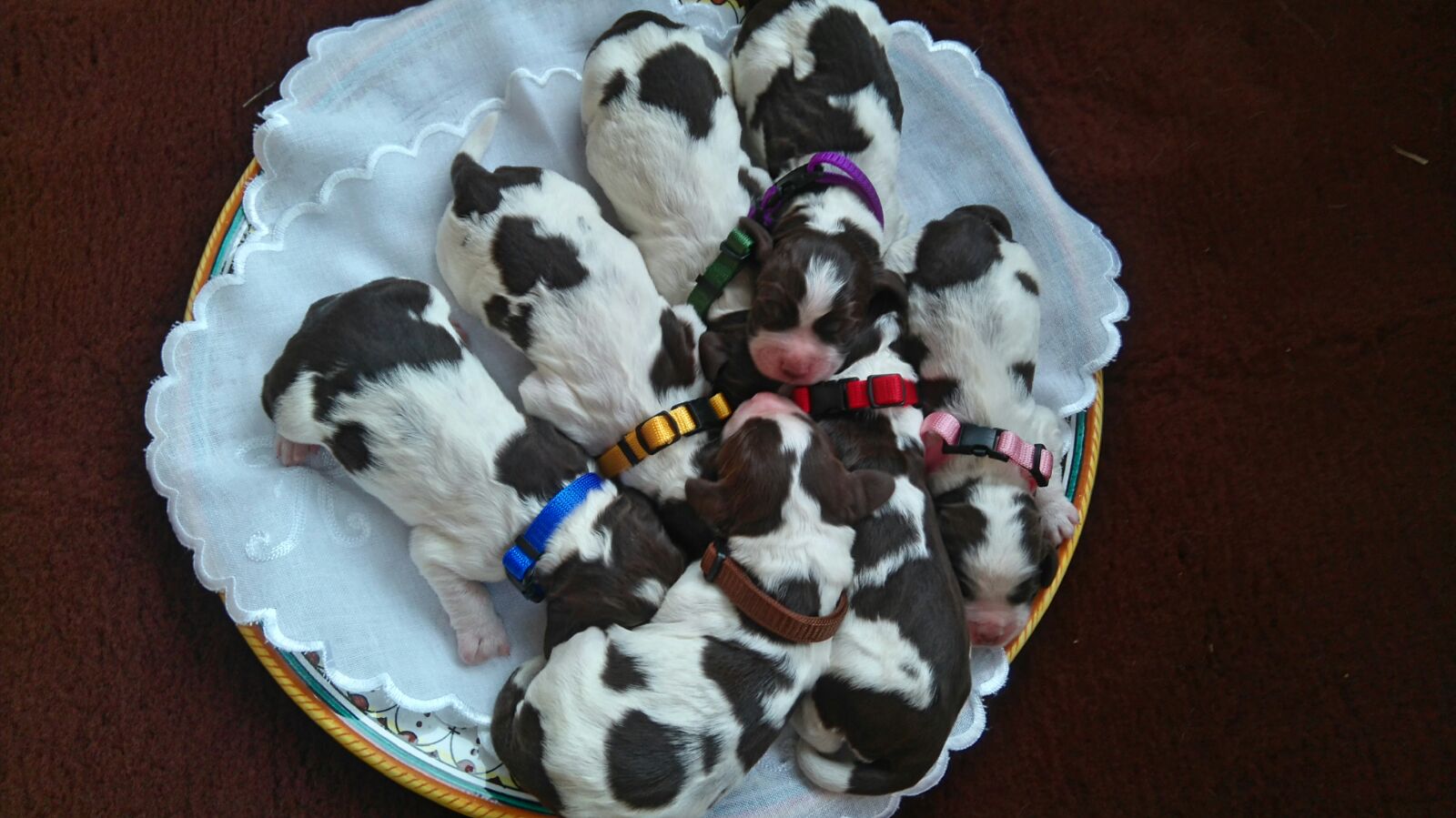 Das Hauptereignis des 10. Dezember war jedoch die Geburt in den frühen Morgenstunden. Unsere Gucci brachte in der Nacht sieben gesunde und gut entwickelte Welpen (fünf Mädchen und zwei Buben ) zur Welt. Unmittelbar danach eilte Evelyn mit Bianca zur Hundeausstellung, während ich ( Lothar ) mich um den Nachwuchs kümmerte. Wir freuen uns riesig über diesen tollen Wurf und über die künftige Vergrößerung der Finkenseefamilie, zu welcher sich schon zahlreiche Interessenten angemeldet haben.